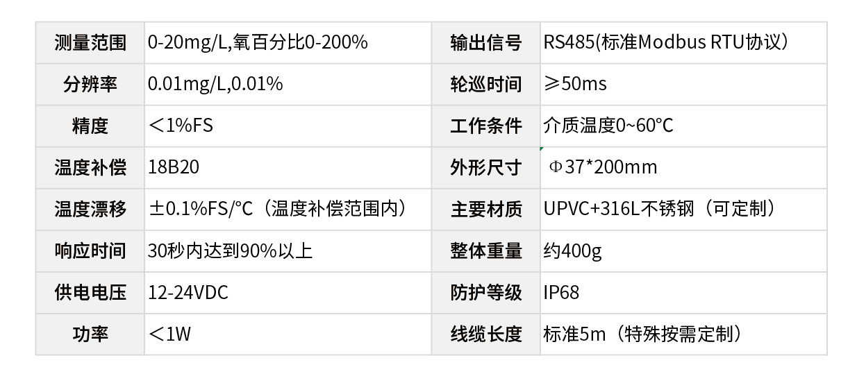 产品特点:无需电解液,不会极化无需消耗氧,不受流速影响内置温度传感器,自动温度补偿内置盐度补偿,参数设置灵活不受硫化物等化学物质干扰漂移小,反应快速,测量更精准使用周期较长,使用成本更低荧光膜头更换方便,维护简单低功耗和抗干扰设计